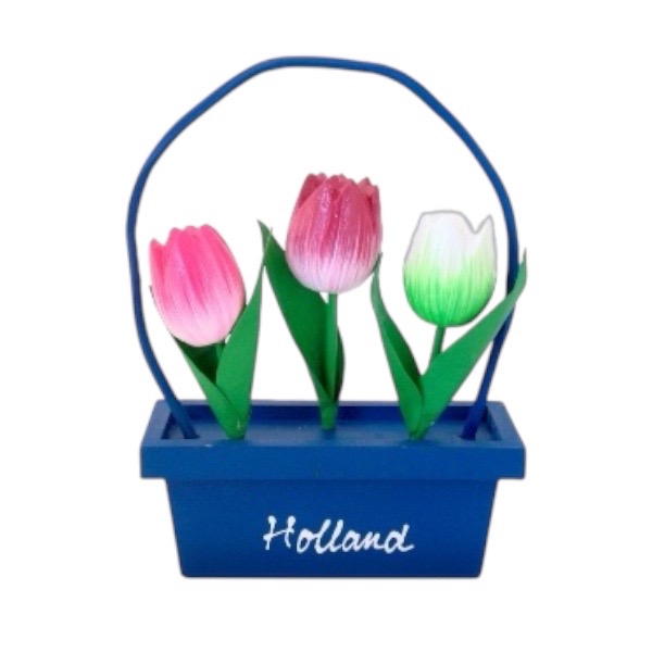 Houten bloembak 3 tulpen HOLLAND - blauw