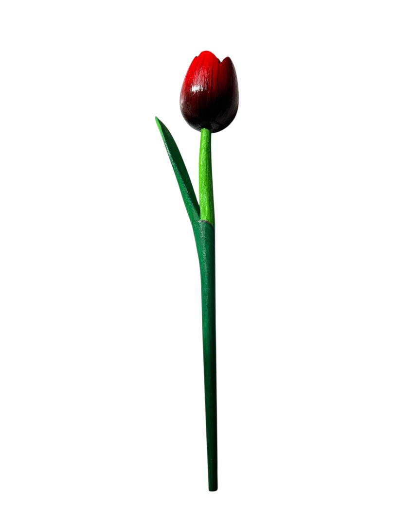Houten tulp 28 cm - rood/zwart