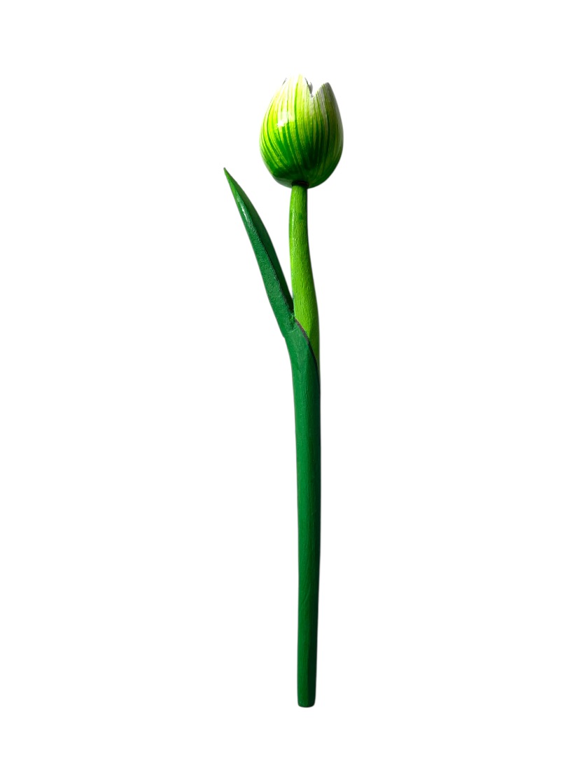 Houten tulp 28 cm - wit/groen